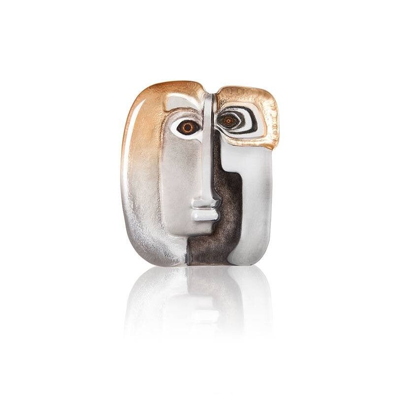 Ontwerp van Mats Jonasson. Handgemaakt in Zweden bij Målerås Glasbruk en gesigneerd. Gegoten, kristallen sculptuur met beschilderd en gezandstraald motief.