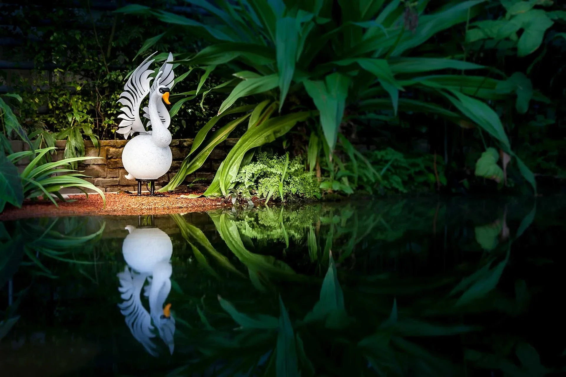 Met zijn lange nek trots naar boven gestrekt presenteert het imposante dier zijn helderwitte verenkleed van staal met een witte poedercoating. Maar of het nu romantisch speels of trots en majestueus is: deze zwaan is een stralend symbool van levenslange loyaliteit en is bovendien uiterst decoratief in uw tuin!