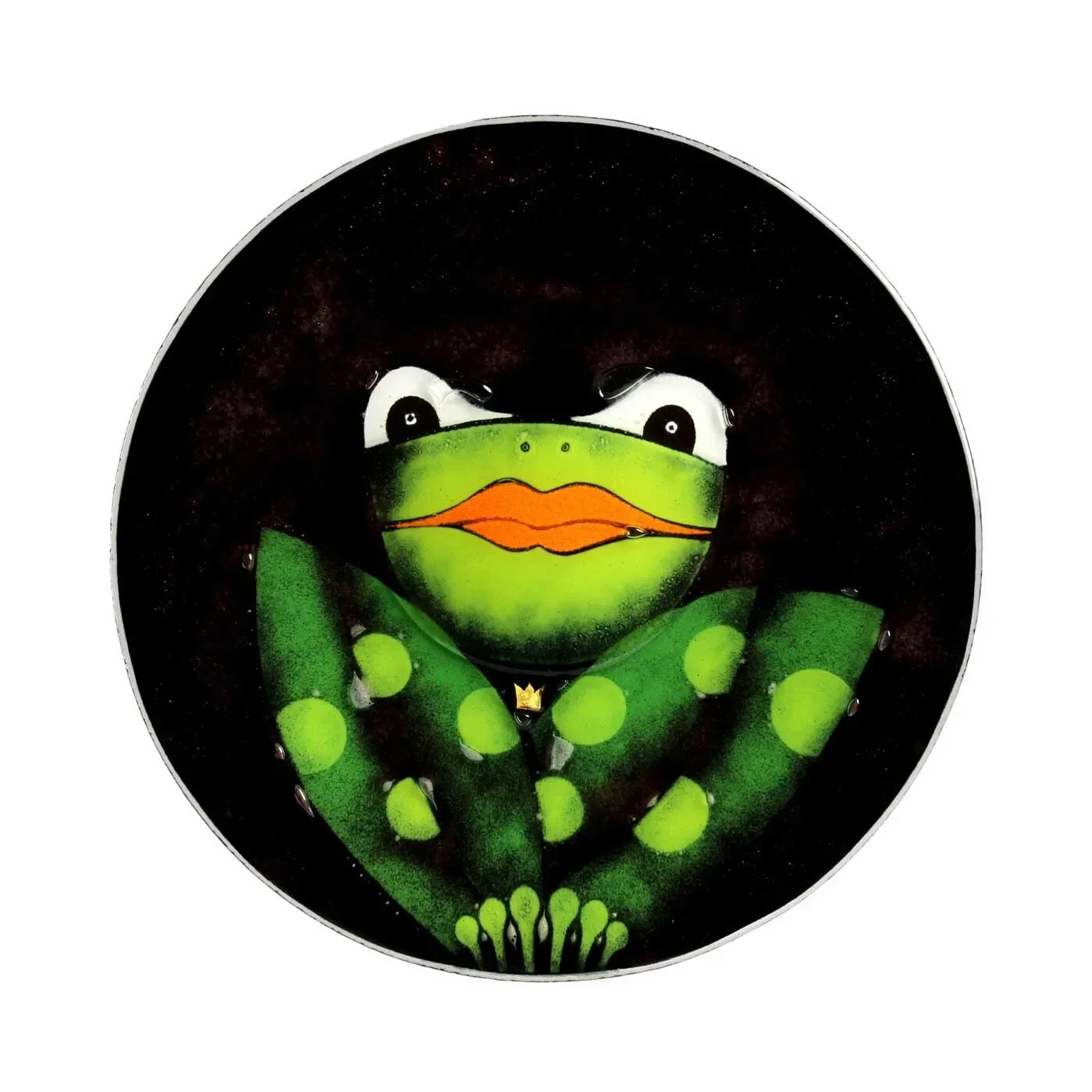 Schaal met een voorstelling van een Kikker in de kleur lime. Met een diameter van 40 cm, ontwerp en uitvoering van Habrat. Techniek, glasfusing. Verpakt in een mooie geschenkverpakking en voorzien van biografie. In zijn sculpturen, hangende objecten, beeldjes en decoratieve voorwerpen is Maciej Habrat's unieke stijl makkelijk te herkennen. Habrat is de perfecte keuze voor iedereen die een cadeau voor een dierbare of een mooie decoratie voor zichzelf zoekt.