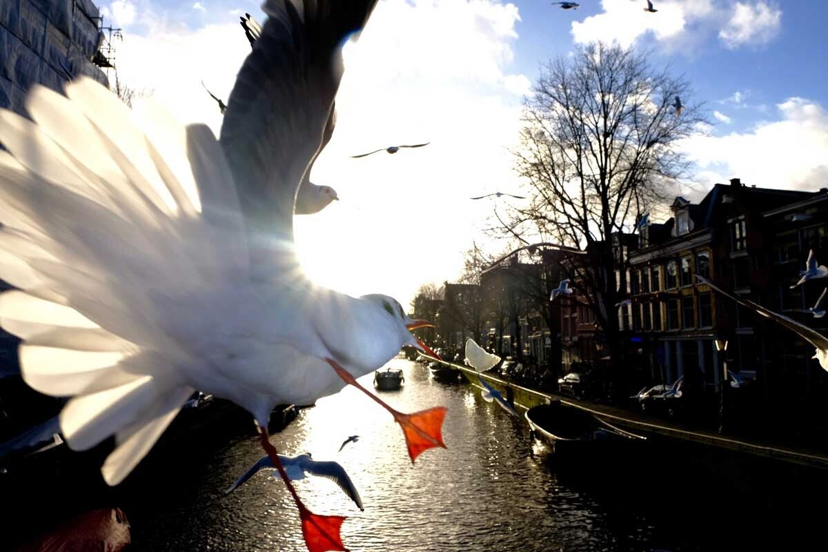 Met zijn fotografische werk maakte Gerard een reeks imposante beelden van meeuwen langs de grachten van Amsterdam.